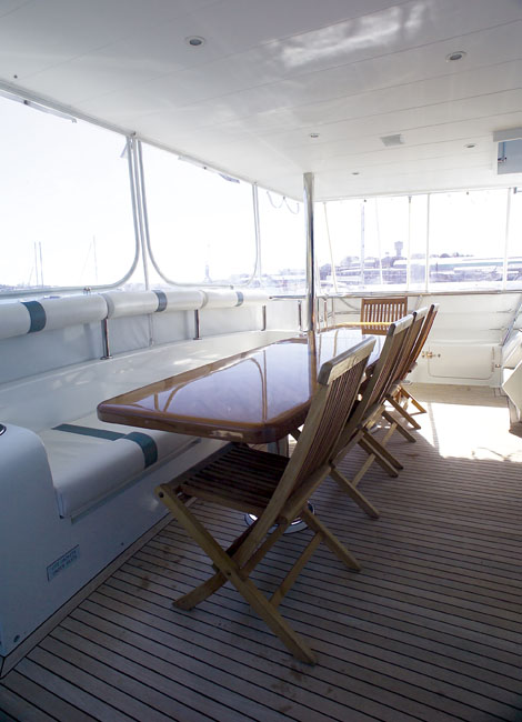 a sumptuous meal on our stunning 84' Monte Fino Motor Yacht for up to 49 guests. Our friendly staff and